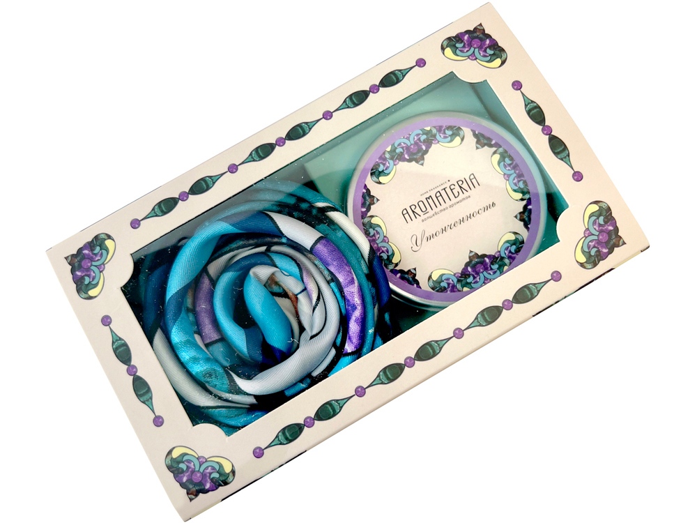 платок- 70% искусственный шёлк, 30% вискоза, свеча- алюминий/натуральный соевый воск, парфюмерная композиция |