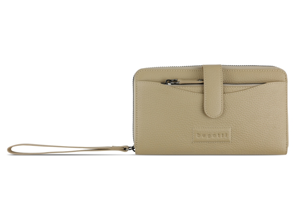 Функциональная организация: основное отделение на молнии, 12 слотов для карт, 3 кармана, 2 отделения для купюр, отделение для монет, съемная ключница, ремешок на запястье, защита данных RFID.