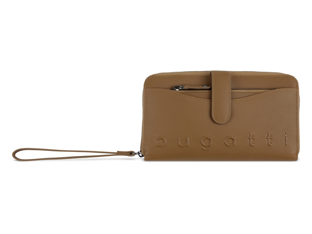 Функциональная организация: основное отделение на молнии, 12 слотов для карт, 2 отделения для купюр, 2 кармана, отделение для монет на молнии, съемная ключница, ремешок на запястье, защита данных RFID.