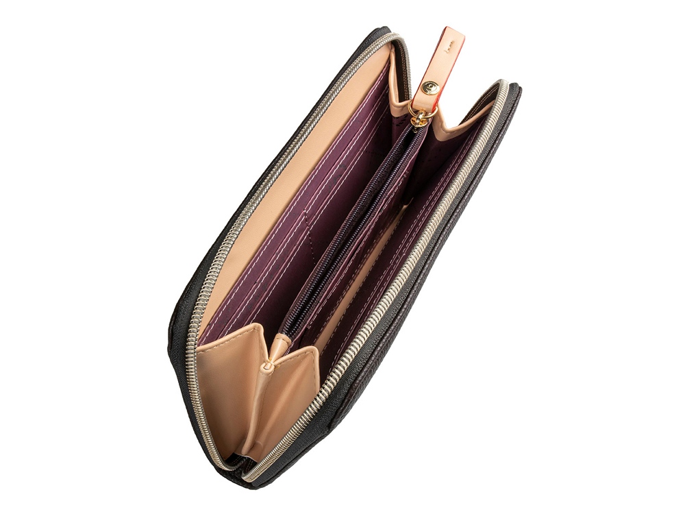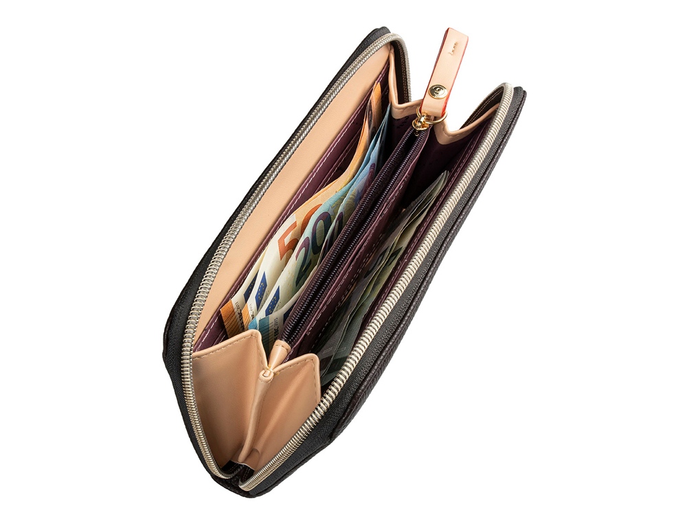 Функциональная организация: отделение для монет на молнии, 2 отделения для банкнот, 9 слотов для карточек, 2 кармана