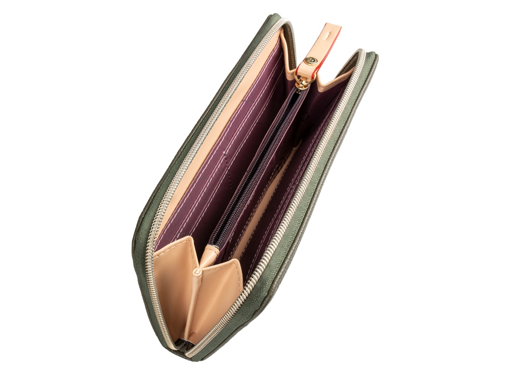 Функциональная организация: отделение для монет на молнии, 2 отделения для банкнот, 9 слотов для карточек, 2 кармана