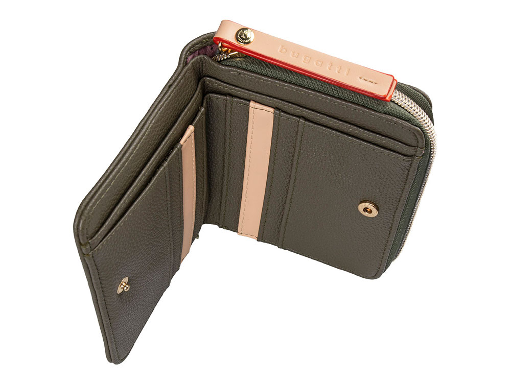 Функциональная организация: 2 отделения для монет, 2 отделения для банкнот, 8 слотов для карточек, карман