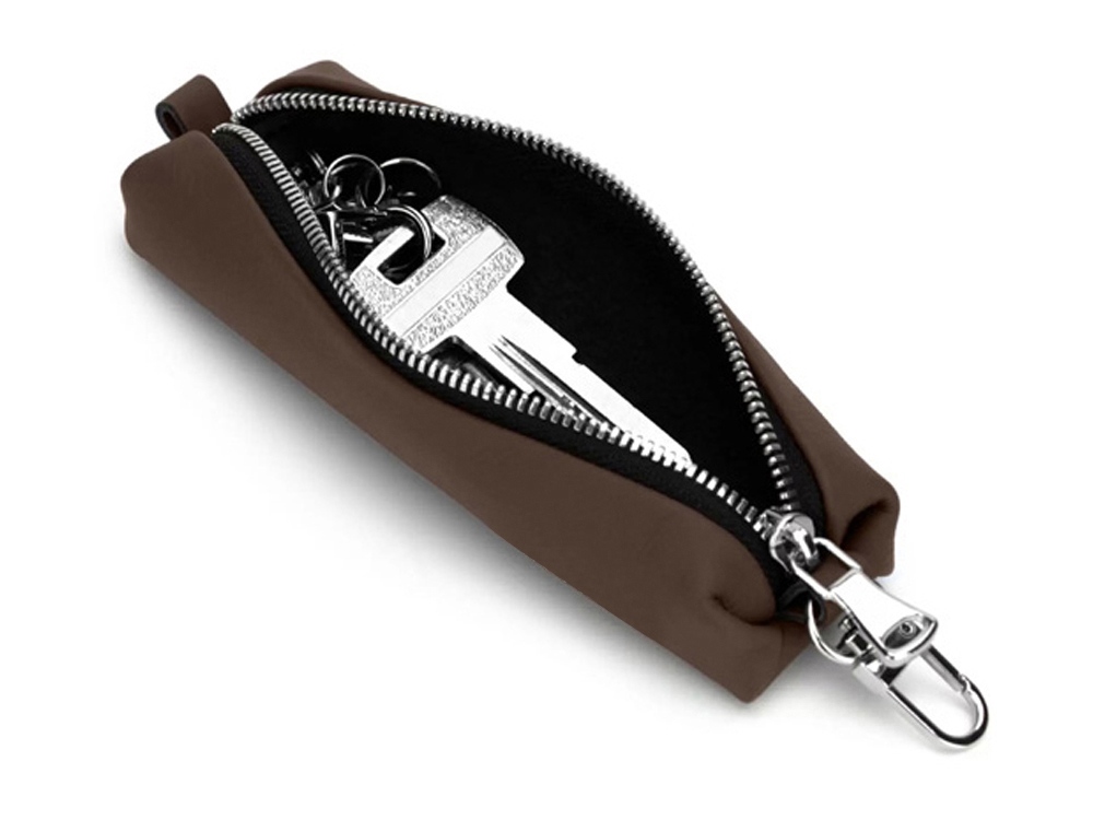 Простая, но в тоже время стильная ключница. Небольшие кольца для ключей, делают эту ключницу максимально легкой. 5 колец для ключей. Металлическая молния придает строгости внешнему виду! |