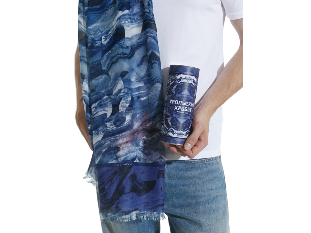 Дизайн шарфа из коллекции Уральский Хребет соотносится с силой и величием Уральских гор и ярким, выраженным мужским характером, который так привлекает женщин.