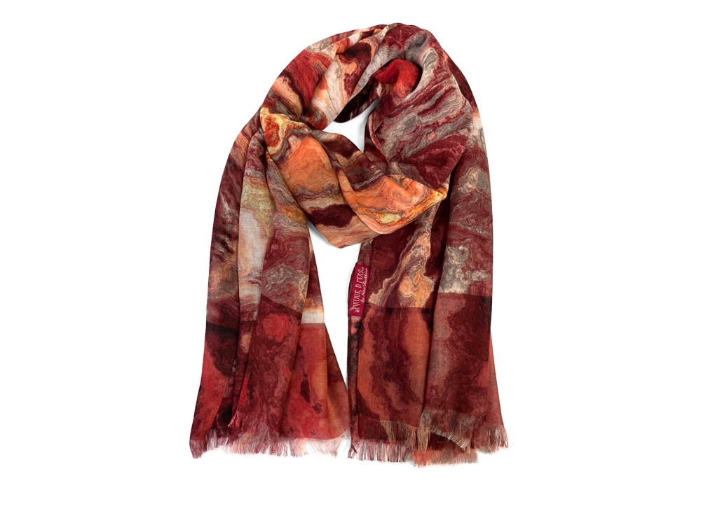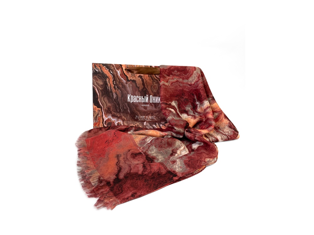 Коллекционный шарф Красный Оникс, выполненный дизайнером Ниной Ручкиной, посвящен минералу Карнеолу (Красному Ониксу). С древних времен этот камень считается символом силы, который носили вожди и победители. В наши дни его любят ценители искусства и драгоценностей, интеллектуалы и почитатели оригинальных украшений. Шарф с уникальной текстурой Красного Оникса подойдет сильным и амбициозным личностям, лидерам по своей натуре Его насыщенная цветовая гамма поможет грамотно расставить недостающие акценты в образе, и сделать его гармоничным. Аксессуар хорошо сочетается с гардеробом в разных стилях, даря радость счастливому обладателю и восхищение окружающим. |