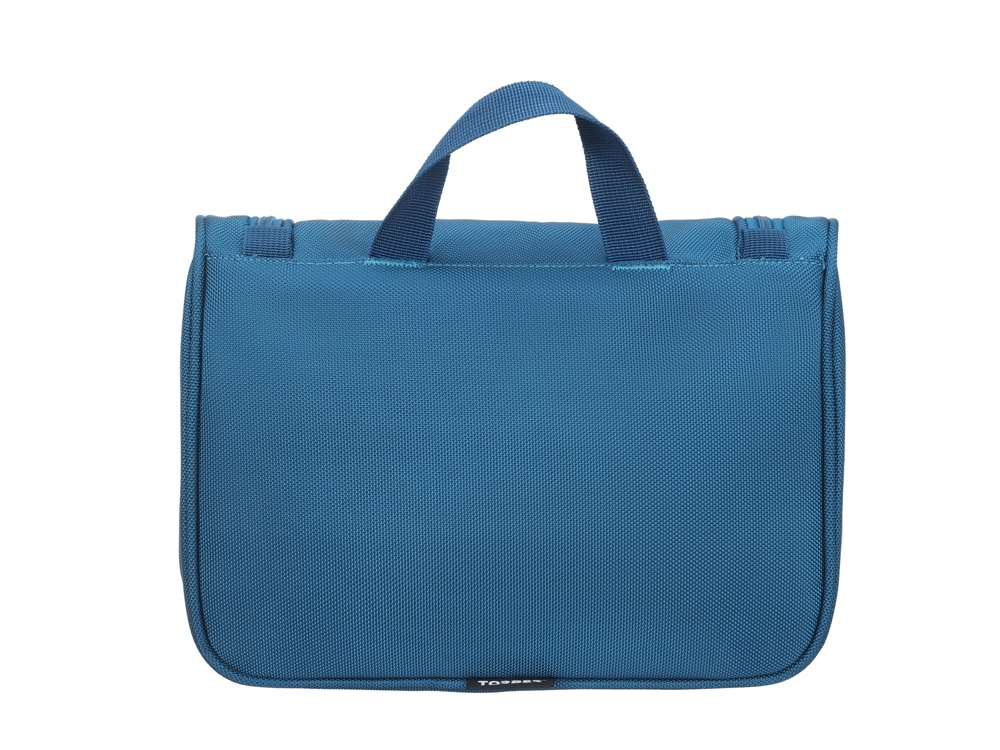 Несессер выполнен из высокопрочного полиэстера в синем цвете, обладает устойчивостью к различным загрязнителям и относительной влагонепроницаемостью. Основное отделение имеет широкий клапан на молнии с двумя бегунками. Несессер содержит 6 различных по назначению и объёму внутренних отделений на молнии и 4 эластичных держателя. С внешней стороны расположены эргономичная ручка для переноски и крючок для подвешивания несессера |