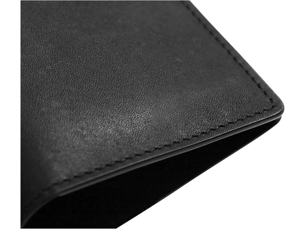 Классическая обложка из дублированной кожи, прокрашенные края, аккуратный шов, прорези для четырёх карт, место для паспорта и документов на машину. |
