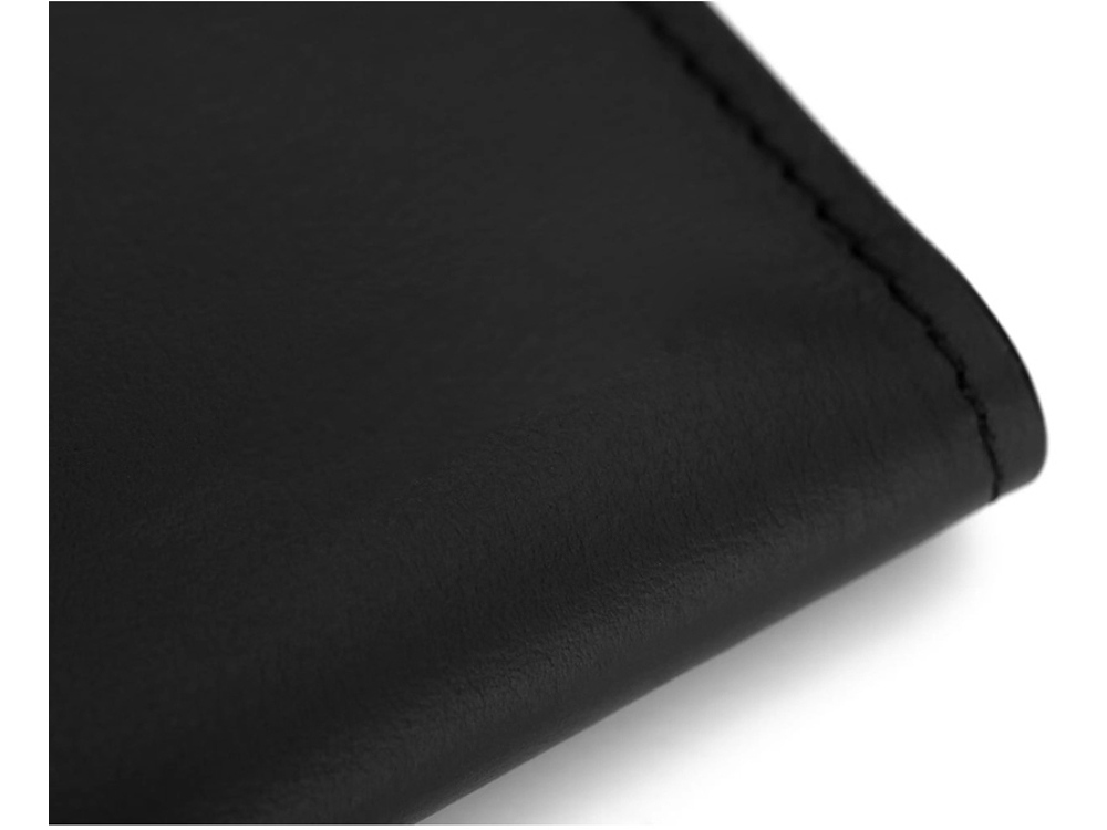Внутри бумажника есть отделения для карт, купюр и широкое отделение, застегивающееся на молнию. Бумажник закрывается на кнопки, это сделано для того, чтобы он оставался закрытым где бы вы его не носили. Края бумажника окрашены в ручную.