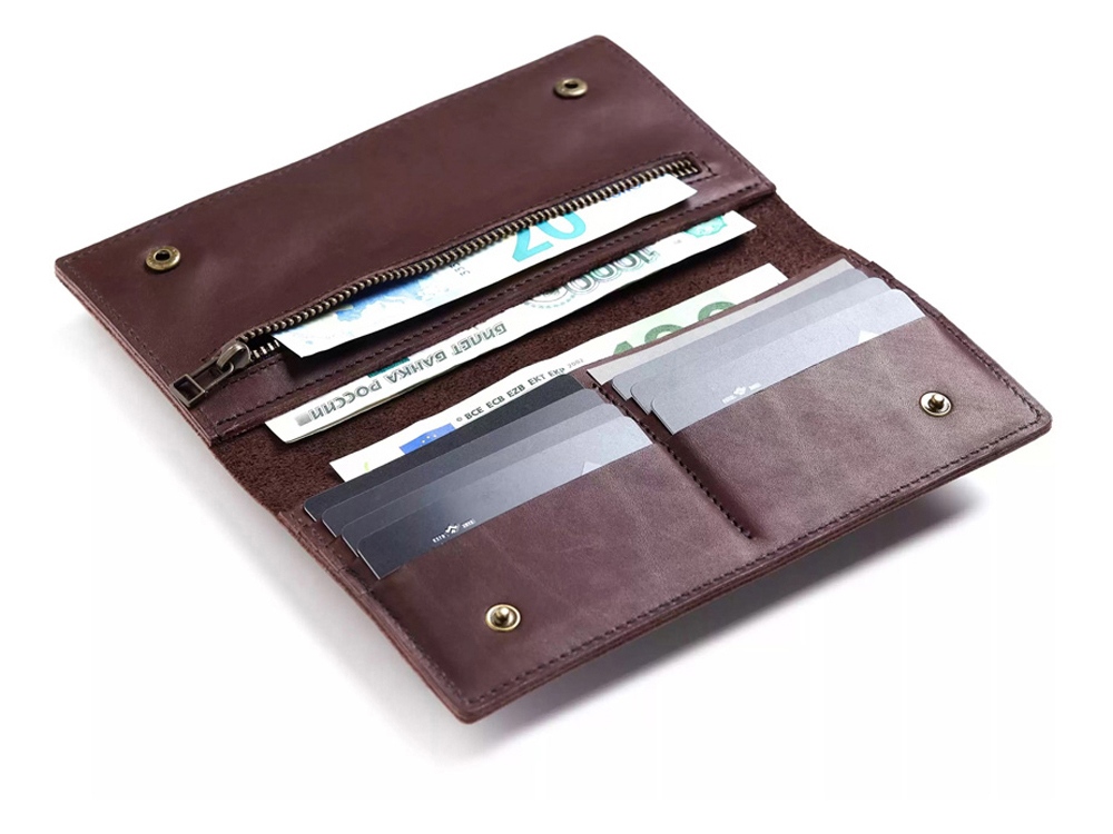 В меру строгий и универсальный, этот кошелек будет верным решением для людей, привыкших носить всё своё при себе.