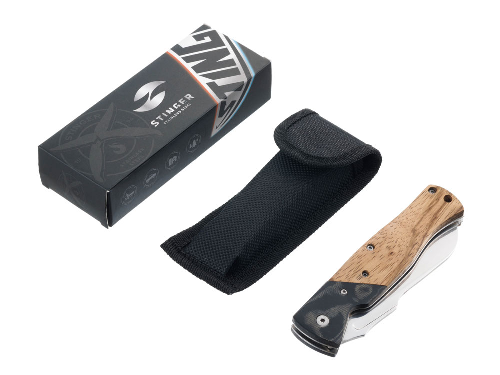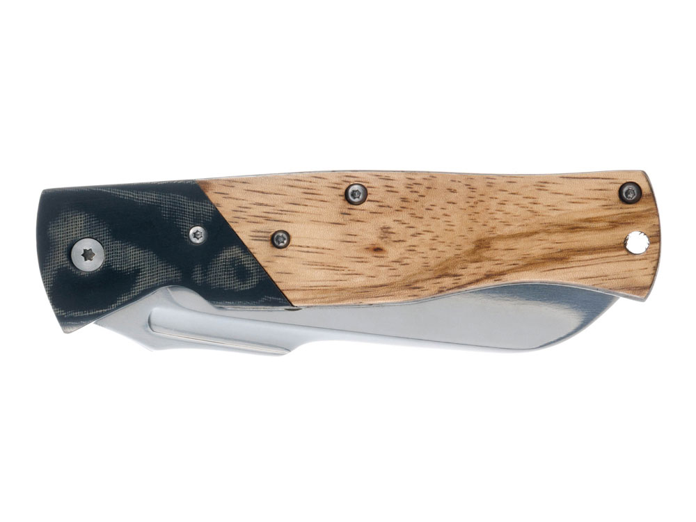 нержавеющая сталь, стеклопластик G10, древесина зебрано |