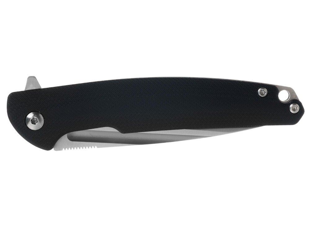 Нож открывается при помощи флиппера с ассистом (механизм ускоренного открывания), который может дополнительно выполнять роль гарды, предотвращая соскальзывание руки на лезвие клинка. На верхней части лезвия расположен подпальцевый упор с насечкой для более комфортной работы.