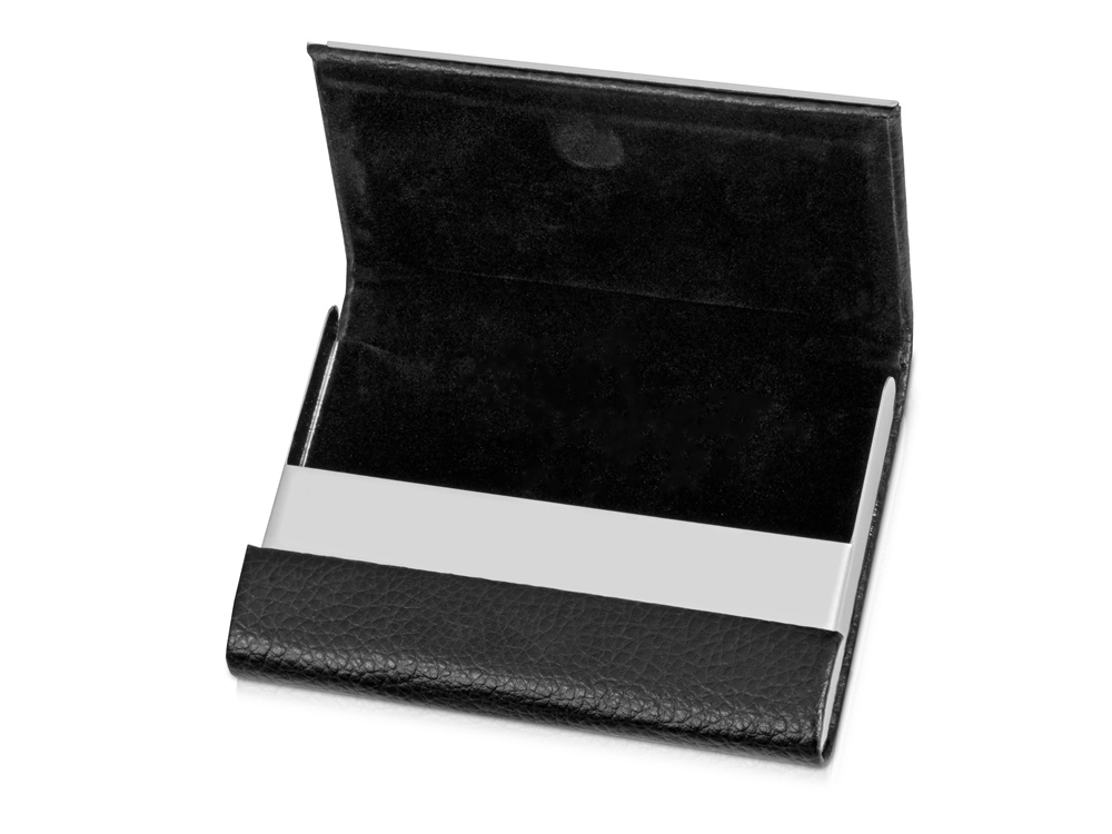 Визитница на магните выполнена из металла с искусственной кожей снаружи и черном бархатом внутри. |