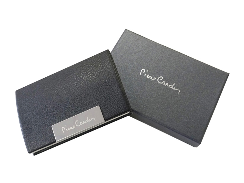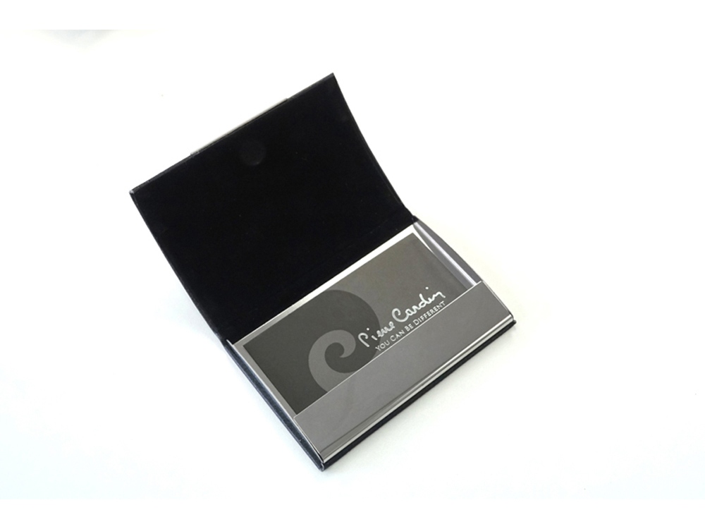 Визитница на магните выполнена из металла с искусственной кожей снаружи и черном бархатом внутри. |