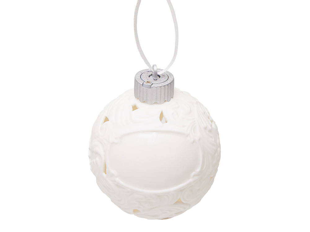 Фарфоровый шар с росписью в технике бисквит. Игрушка ручной работы. Матовая, бархатистая поверхность и пастельные тона создают утонченный образ старинного зимнего праздника. Это воплощение изящества и ностальгии. Шар светится изнутри мягким и ровным светом, наполняя пространство атмосферой спокойствия и волшебства.