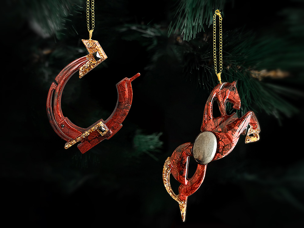 Изысканный дуэт талисманов, наполненных символизмом и энергией в духе Василия Кандинского. В набор входят две уникальные фигурки: лошадь и подкова, созданные в оттенке Гранатовый шёлк — насыщенном, благородном бордо с лёгким шелковистым отблеском, напоминающем вечернее праздничное платье.