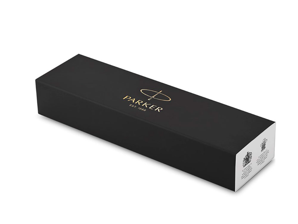 Лакированный корпус из отшлифованного металла с круговой полировкой превосходно сочетается с позолоченными декоративными элементами. Ручка упакована в подарочную коробку Parker. |