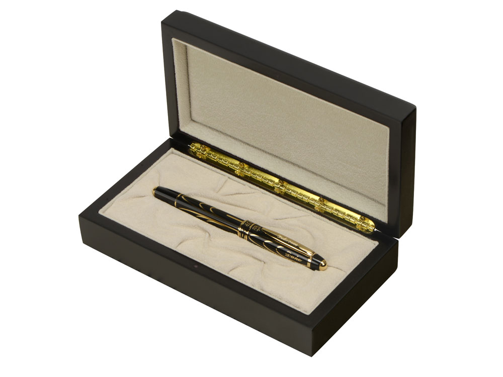 Во всем мире эта ручка считается ручкой монархов и правящих особ благодаря непревзойденному качеству, королевской отделке и необыкновенному футляру из ценных пород дерева. |