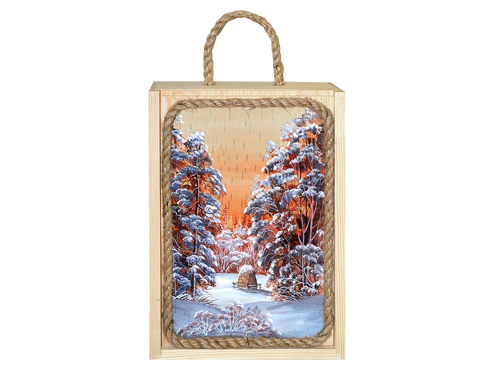 Подарочный набор в уникальном деревянном коробке с рисунком на бересте: книга, в которую входят лучшие тосты XX века, три стопки в виде патронов, уникальный таежный нож с множеством функций. Место для бутылки водки 0.5л. |