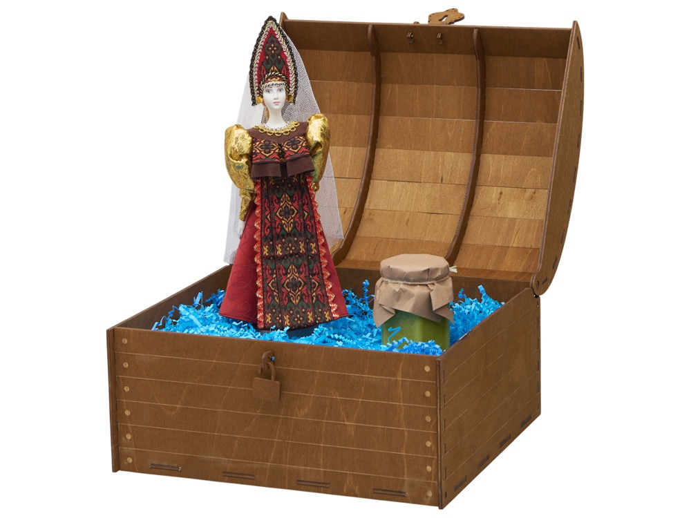 кукла- фарфор/текстиль, сундук- дерево |