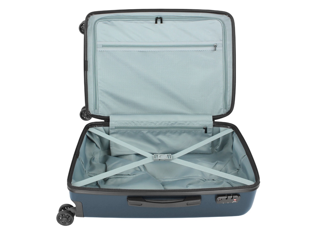 Внешняя организация: телескопическая ручка, кодовый замок TSA, 4 двойных колеса, боковая ручка, ручка на дне