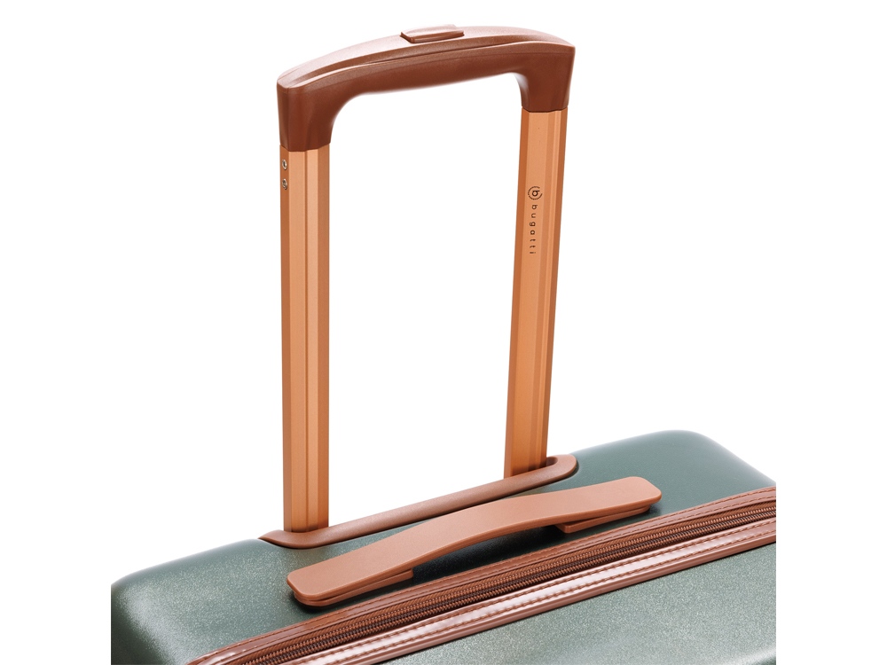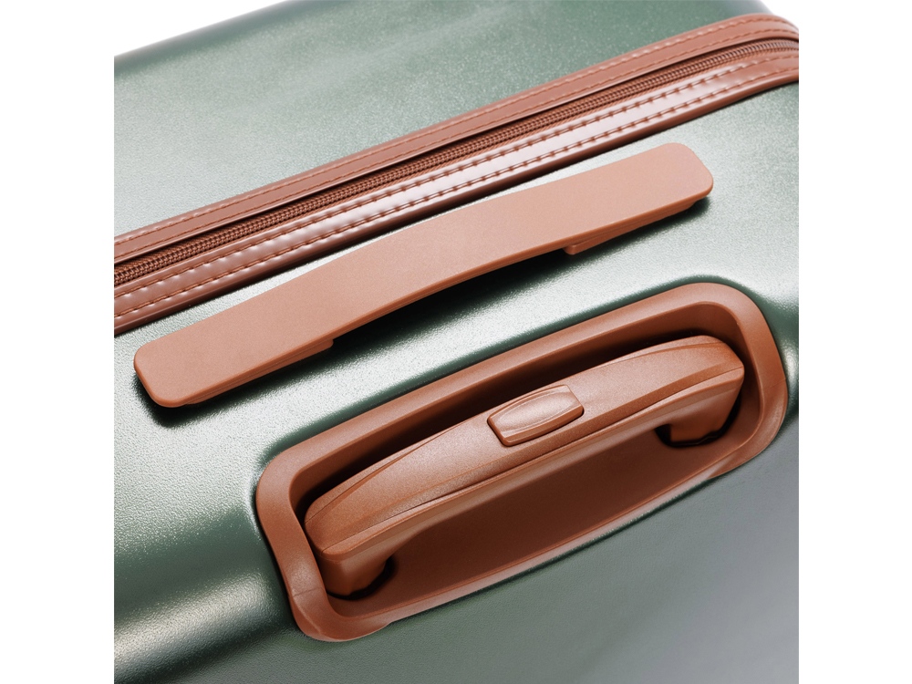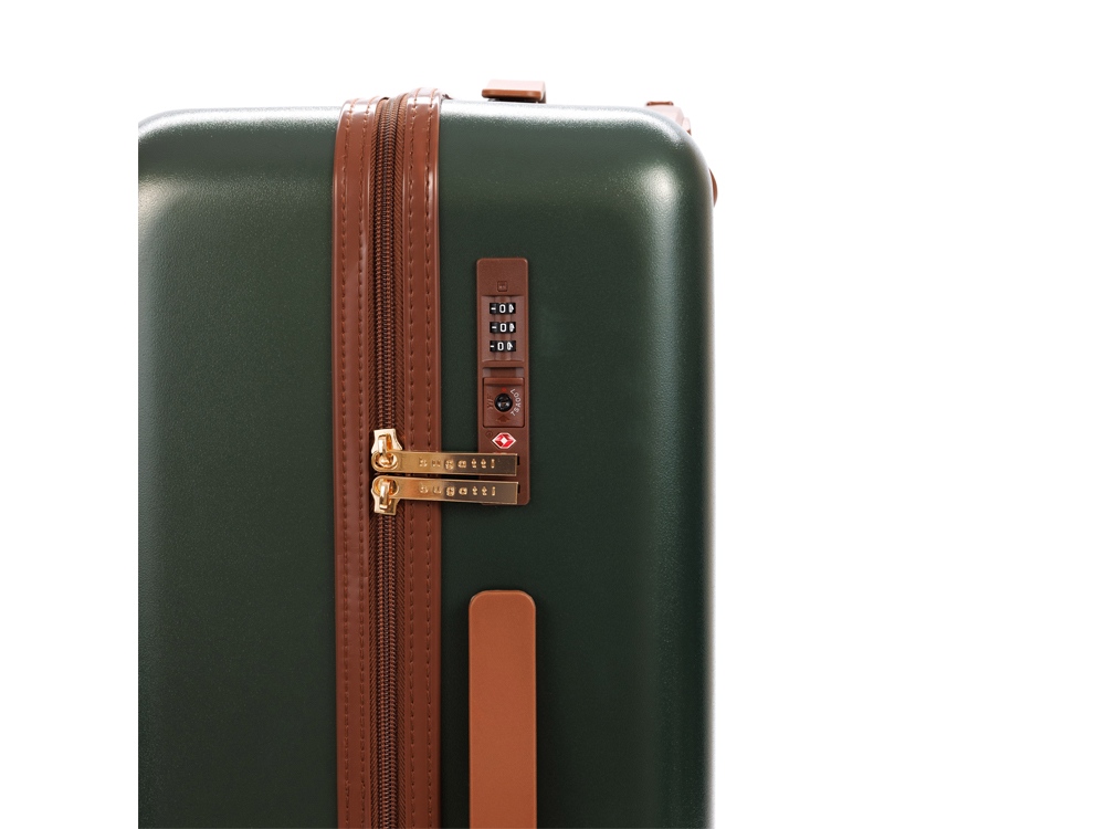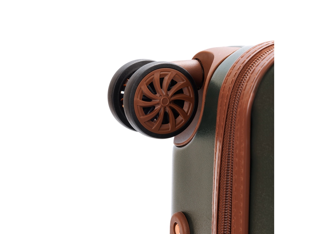 AMELIA воплощает собой неповторимый образ, сочетающий эстетику ретро с современной функциональностью. Вся товарная линейка представлена в великолепных темно-изумрудном и кремовом оттенках. Контрастные детали насыщенного коричневого цвета, бронзовые ручки и фурнитура идеально дополняют дизайн, подчеркивают индивидуальность и выразительность каждой модели. Изготовленные из высококачественного АБС-пластика и поликарбоната, чемоданы AMELIA обладают удивительной прочностью и легкостью. Четыре резиновых колеса с бесшумным ходом и возможностью поворота на 360° обеспечивают плавное передвижение по любой поверхности, сохраняя при этом полную маневренность. Интегрированный замок TSA с трехзначным кодом гарантирует защиту вашего багажа от несанкционированного доступа. Продуманная концепция больших отделений с перегородкой на молнии и дополнительными карманами максимально оптимизирует использование внутреннего пространства. Легкая телескопическая ручка с несколькими положениями фиксации обеспечивает комфорт в использовании для людей разного роста. Удобные ручки сбоку и на дне корпуса облегчают загрузку и выгрузку чемодана. Боковые держатели позволяют разместить дополнительные дорожные аксессуары.