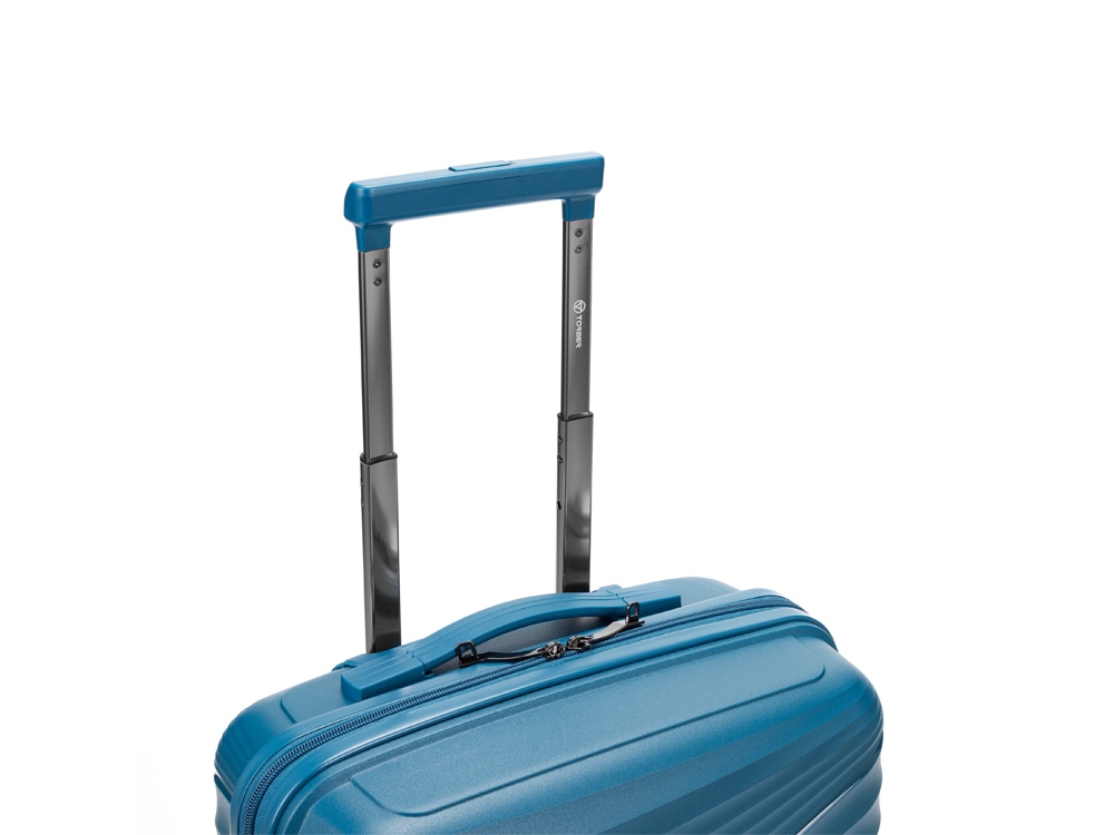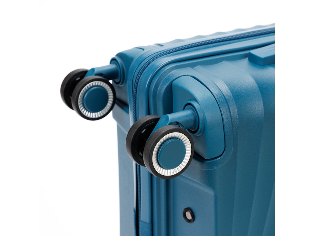 Легкая регулируемая телескопическая ручка и система из 8 колес, вращающихся на 360 градусов, обеспечивает мягкий ход и свободное движение во всех направлениях.