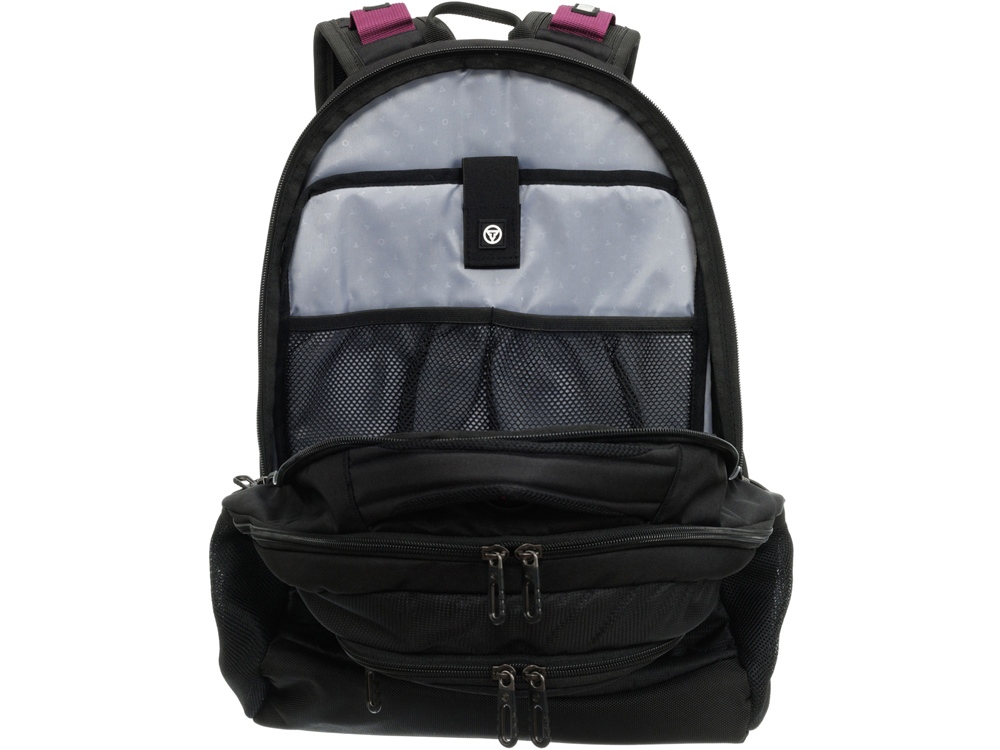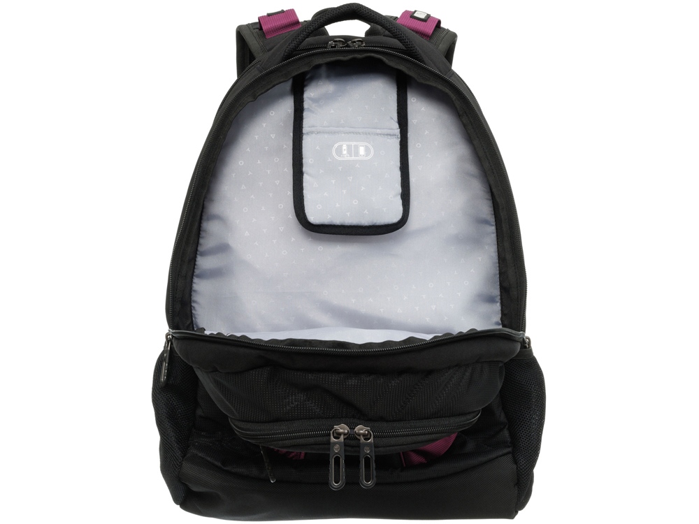 Рюкзак оборудован специальным отделением для ноутбука с диагональю экрана 15. По бокам рюкзака расположены два сетчатых кармана для бутылок с водой или зонта. Рюкзак имеет специальное отделение для телефона или зарядного устройства с отверстием для наушников/проводов.