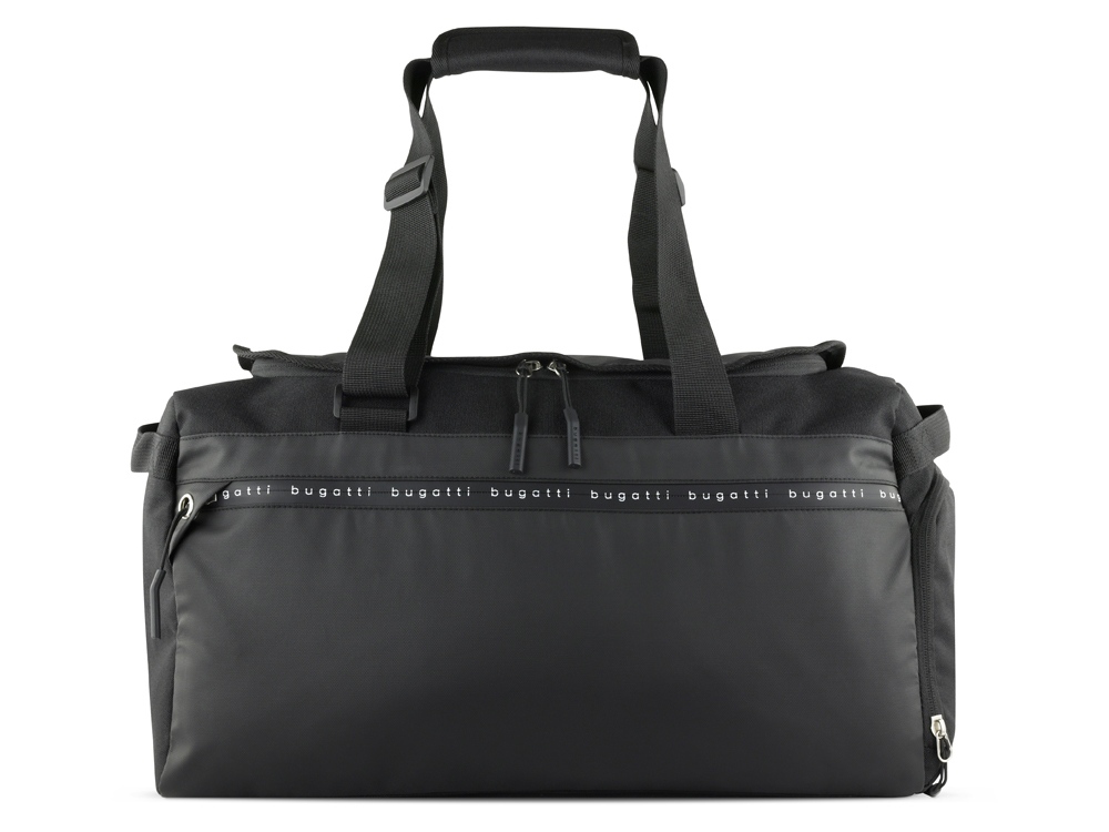 Функциональная организация: основное отделение на молнии с карманом на молнии, боковое отделение для обуви на молнии, передний карман на молнии, 2 боковые ручки, ремень для крепления к телескопической ручке чемодана, 2 регулируемые ручки, которые можно использовать как плечевые ремни (до 75 см).